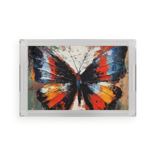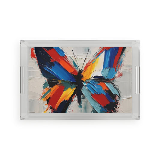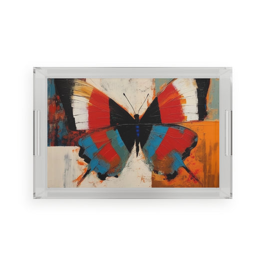 Abstract Acrylic Serving Tray for Art Lovers: Butterfly-Inspired Delight