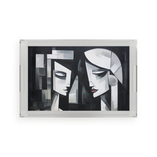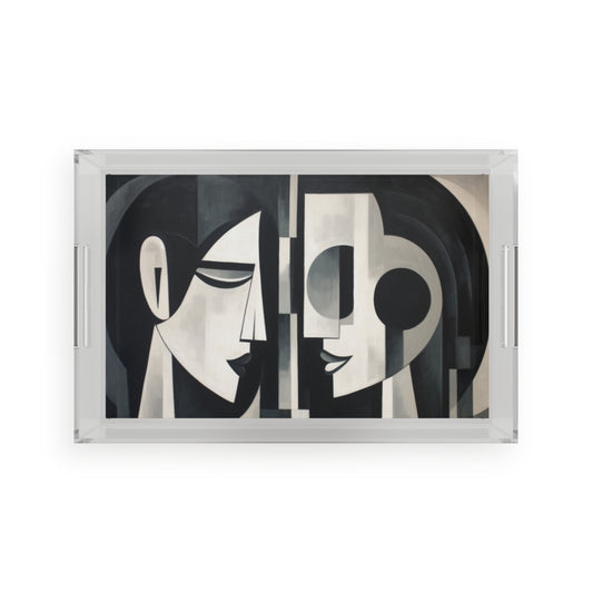 Cubist Woman Brush Strokes Acrylic Serving Tray: Embrace the Abstract Fusion