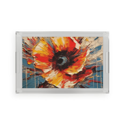 • Poppy Symphony: Acrylic Serving Tray with Abstract Floral Artwork