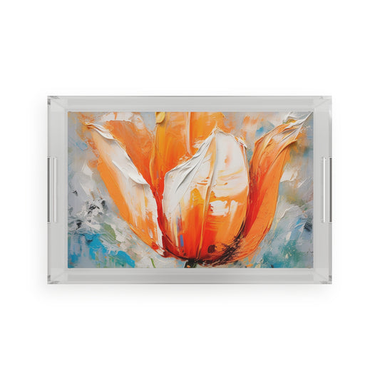 Acrylic Serving Tray with Vibrant Orange Tulip: Embrace the Beauty of Nature