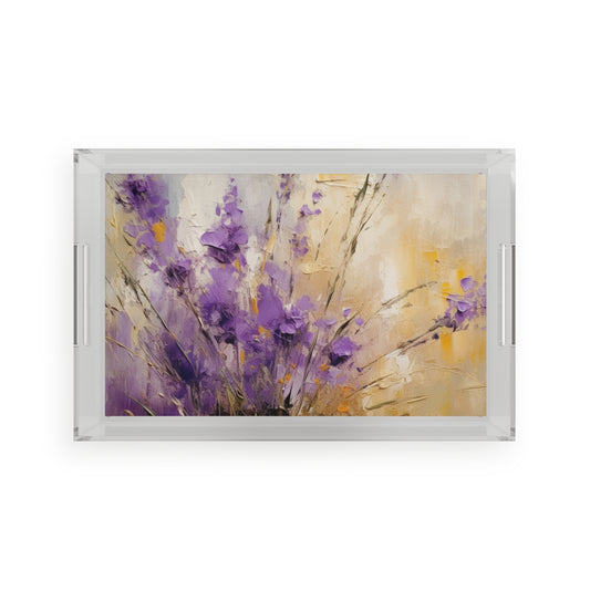 Vibrant Lavender Art on Acrylic Serving Tray: A Floral Delight for Your Senses