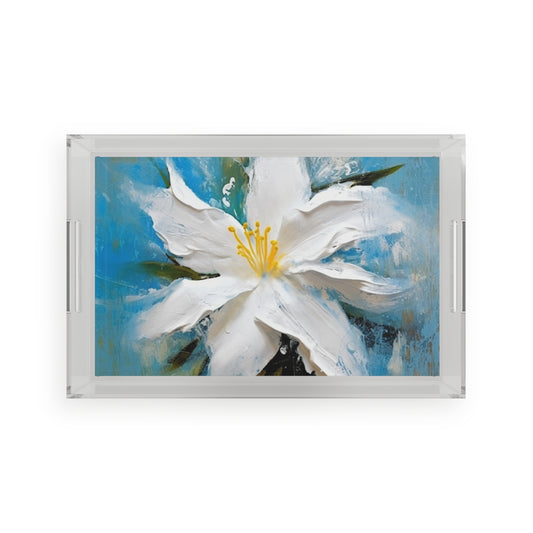 Ethereal Elegance: Acrylic Serving Tray featuring an Abstract Oil Painting of Jasmine