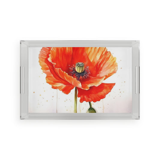 Watercolor Poppy Garden Acrylic Serving Tray: Unleash the Beauty of Nature
