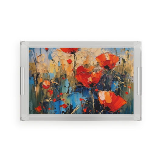 Abstract Poppy Fields: Acrylic Serving Tray for Artistic Inspiration