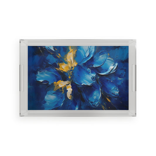 Abstract Wallpaper Acrylic Serving Tray: Immersive Floral Beauty with Blue Orchid Motif