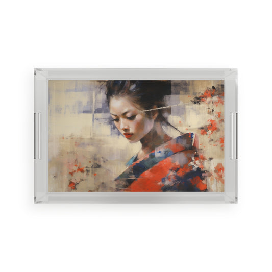Abstract Geisha Art Acrylic Serving Tray: Captivating Brushstrokes in a Japanese Aesthetic