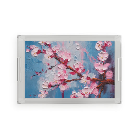 Acrylic Serving Tray with Abstract Cherry Blossom Drawing: Embrace the Serenity