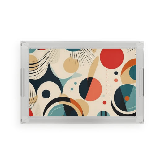 Abstract Elegance: Midcentury Modern Acrylic Serving Tray with Modern Abstract Art and Vintage Fashion
