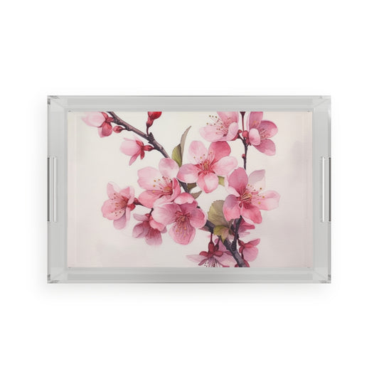 Artistic Flourish: Floral Watercolor Cherry Blossom Acrylic Serving Tray