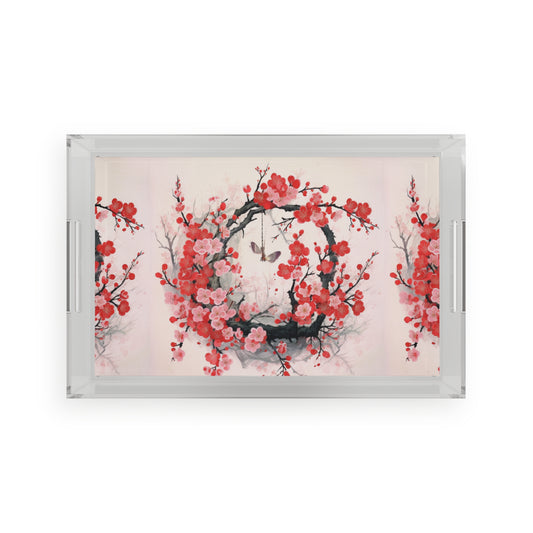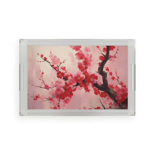 Nature's Brushstrokes: Acrylic Serving Tray Featuring Captivating Cherry Blossom Drawings