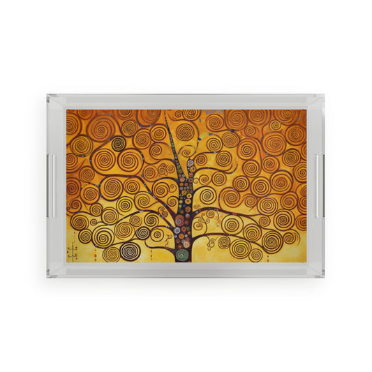 Symbolic Harmony: Gustav Klimt Tree of Life Acrylic Serving Tray, Embrace Artistic Elegance