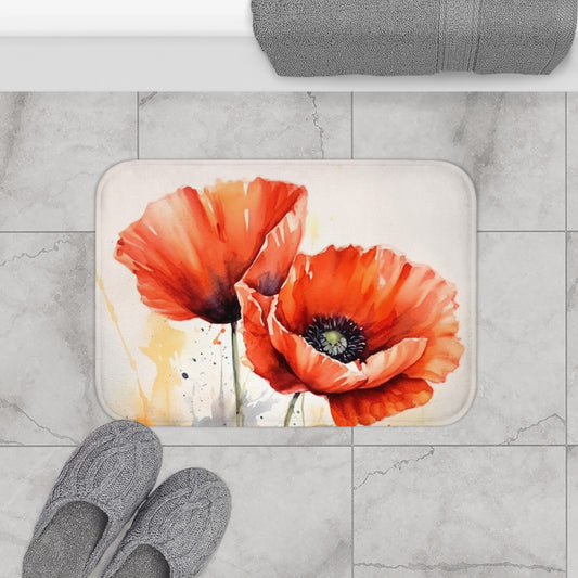 Whimsical Poppy Flower Watercolor Bathmat: An Artistic Delight