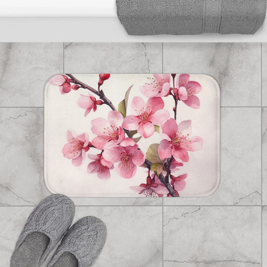 Artistic Flourish: Floral Watercolor Cherry Blossom Bathmat