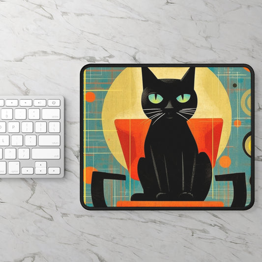 Fashionably Retro Feline: Midcentury Modern Gaming Mouse Pad with a Vintage Cat-Inspired Flair