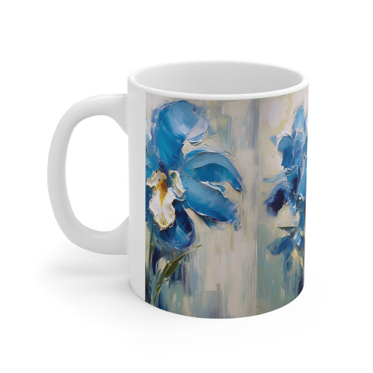 Embrace Artistic Expression with Blue Orchid Abstract Painting Ceramic Mug