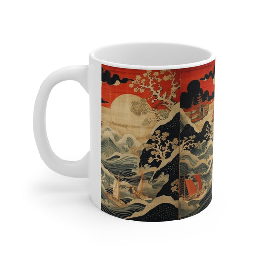 Ceramic Mug: Artistic Fusion - Where Japanese Tapestry Meets the Perfect Coffee Mug