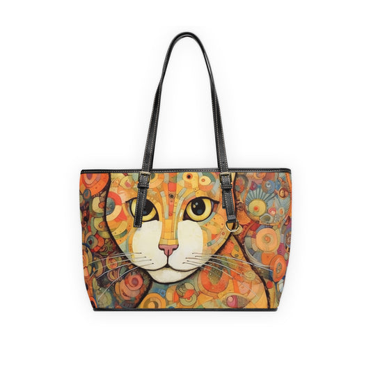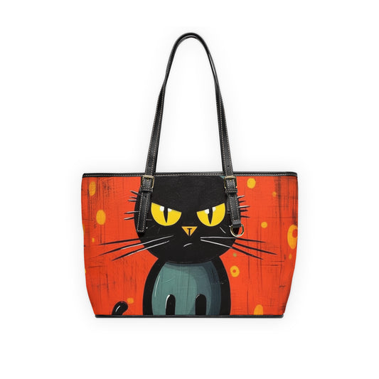 Fashionably Retro Feline: Midcentury Modern PU Leather Shoulder Bag with a Vintage Cat-Inspired Flair