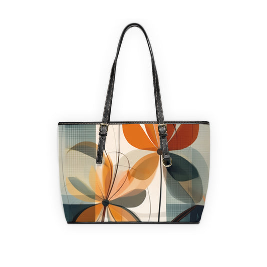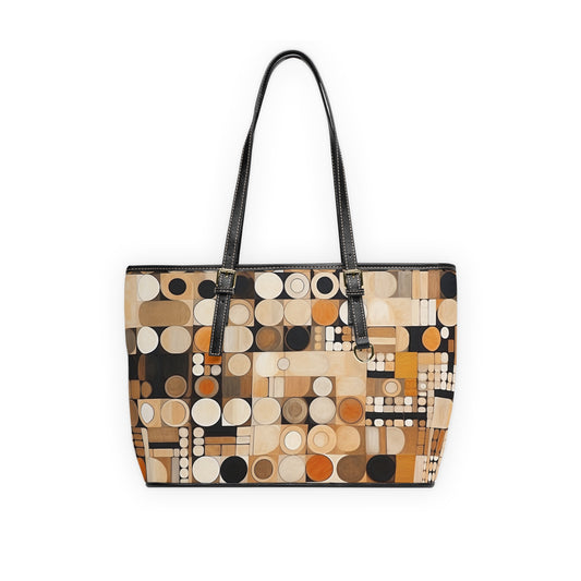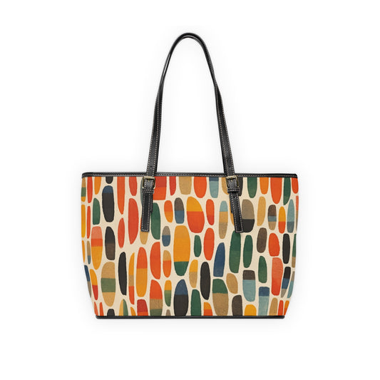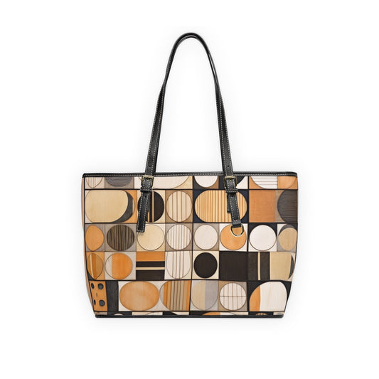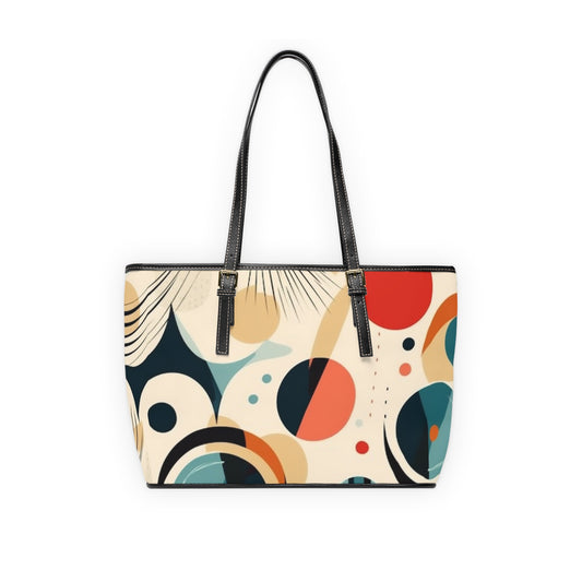 Abstract Elegance: Midcentury Modern PU Leather Shoulder Bag with Modern Abstract Art and Vintage Fashion