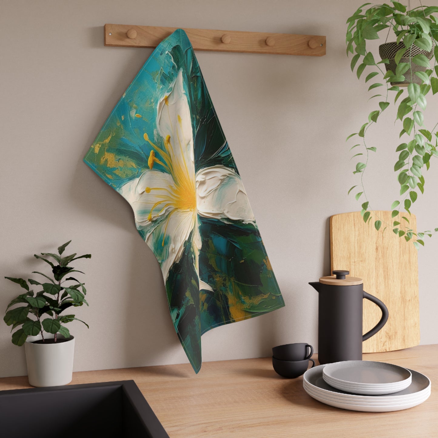 Floral Symphony: Kitchen Towel featuring an Abstract Oil Painting of Jasmine