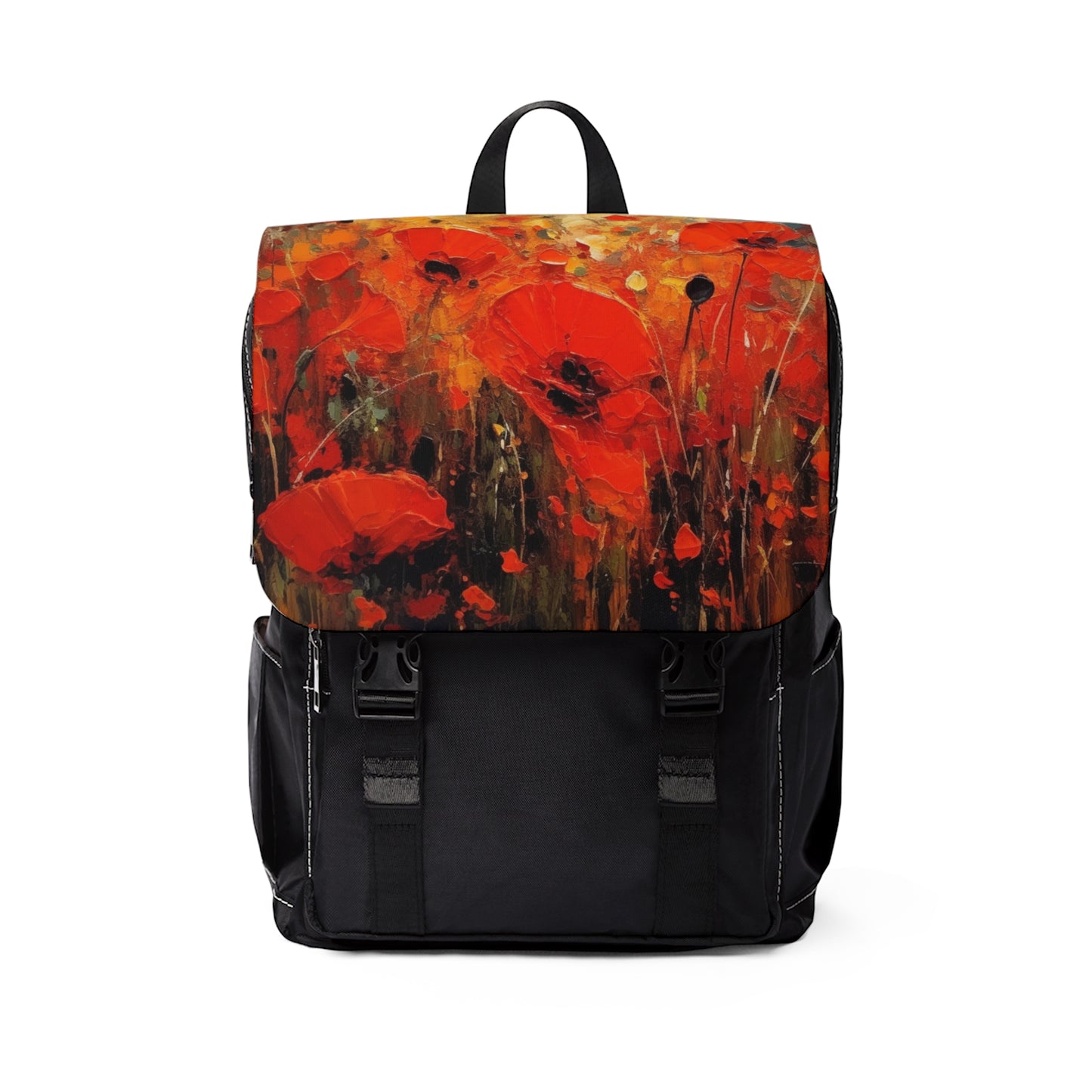 Whimsical Poppy Art on Unisex Casual Shoulder Backpack