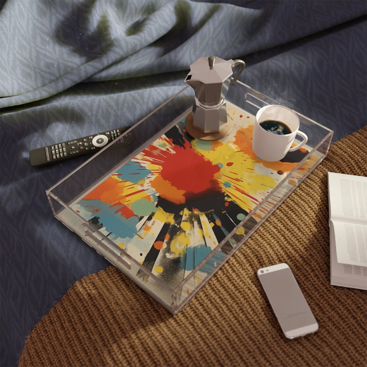 Gutai-inspired Delight: Acrylic Serving Tray with Colorful Shape Composition