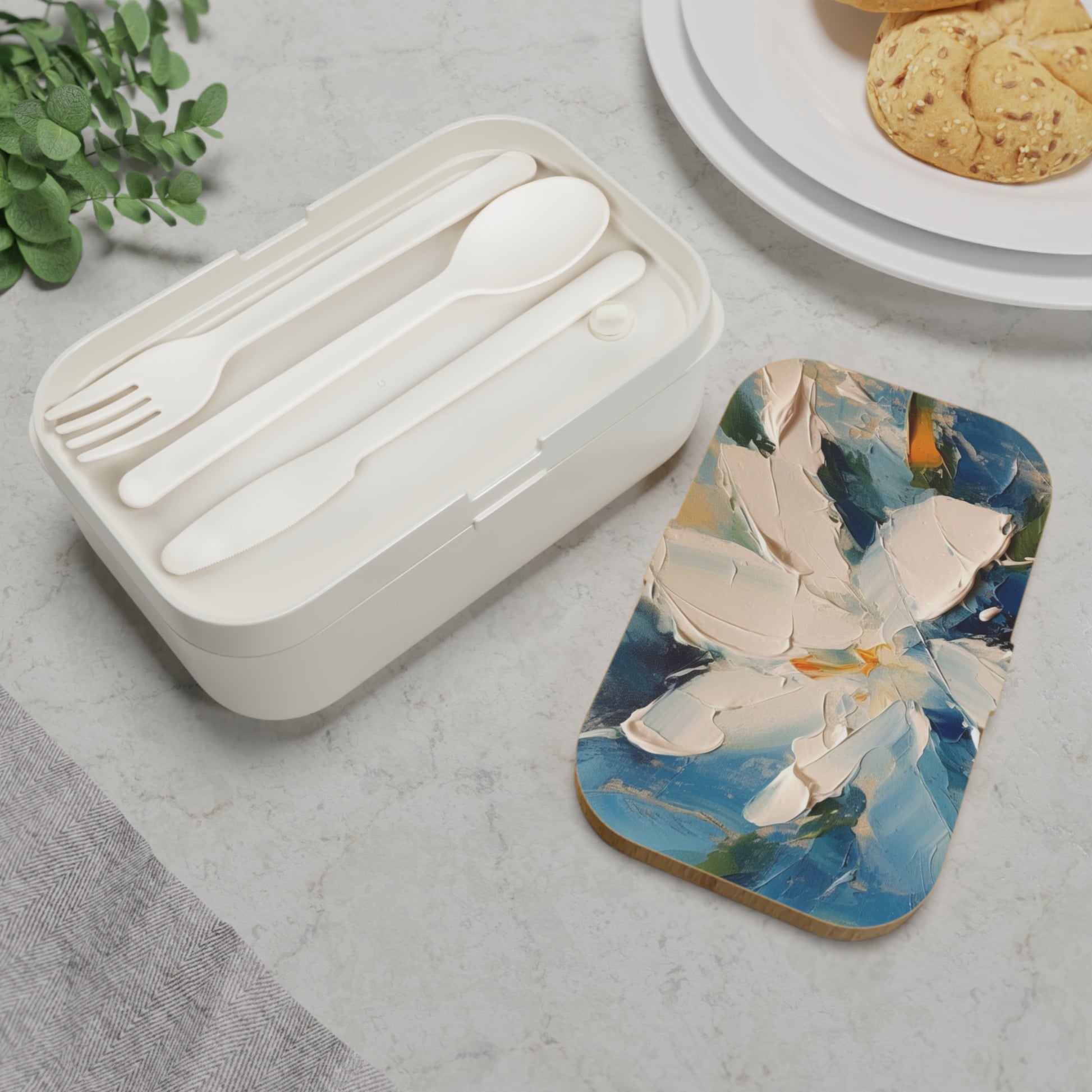 Journey into Artistry: Bento Box showcasing an Abstract Oil Painting of Jasmine