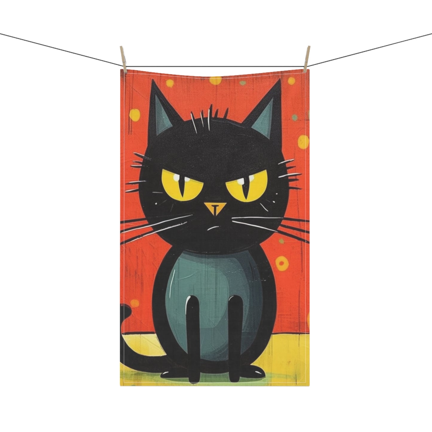 Fashionably Retro Feline: Midcentury Modern Kitchen Towel with a Vintage Cat-Inspired Flair
