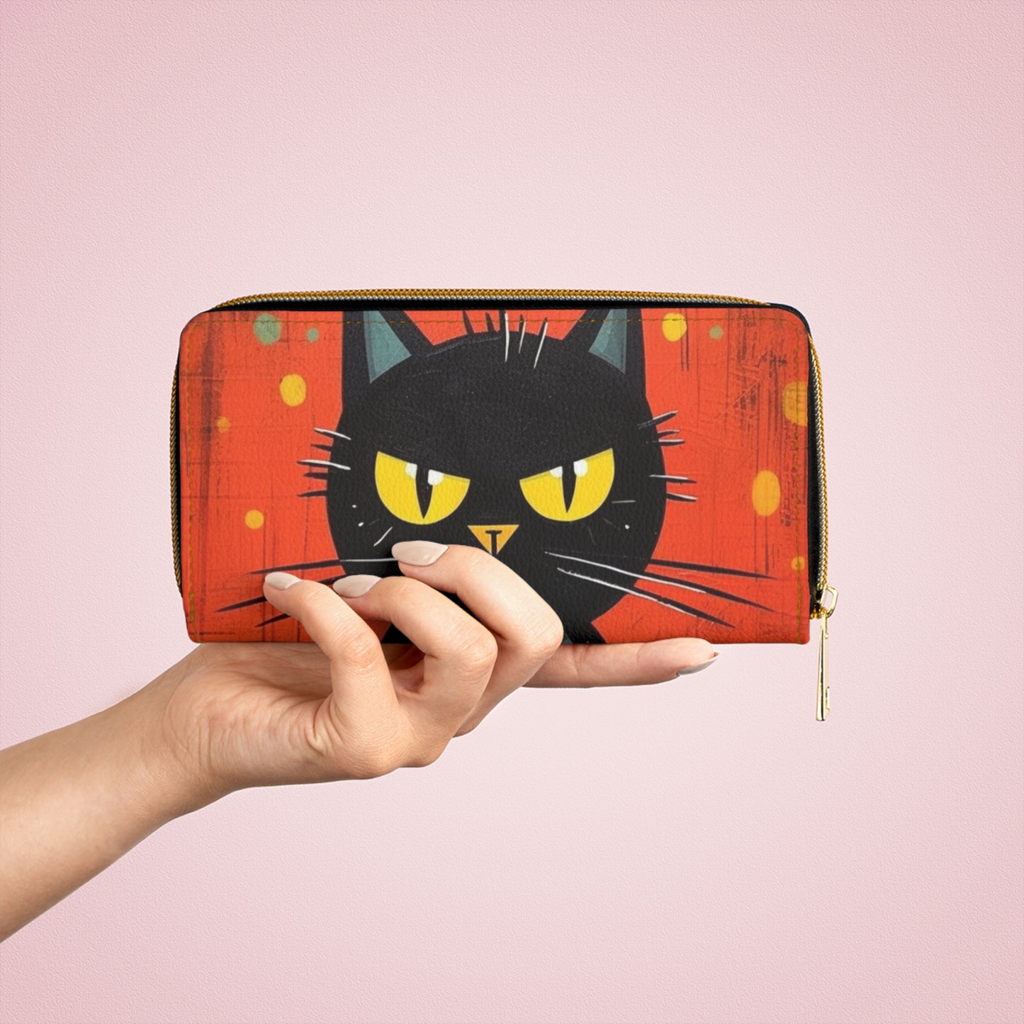 Fashionably Retro Feline: Midcentury Modern Zipper Wallet with a Vintage Cat-Inspired Flair