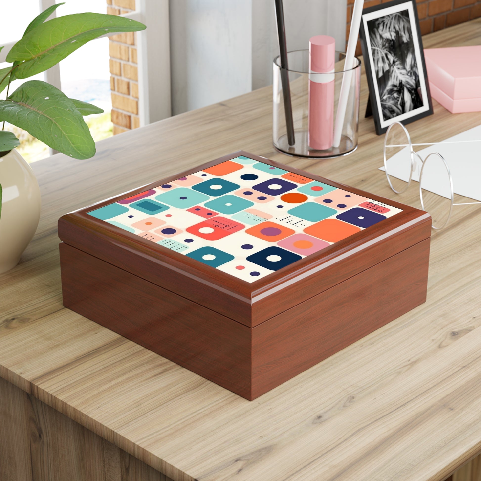 Embrace retro chic with our Atomic Age-Inspired Jewelry Box. This midcentury modern gem features a blend of retro design, atomic age influences, and 1960s fashion. Open the box to reveal a thoughtfully organized interior with compartments and dividers, ensuring your jewelry is beautifully showcased and easily accessible. Experience the perfect fusion of vintage flair, midcentury modern aesthetics, and retro charm with this stylish jewelry box.