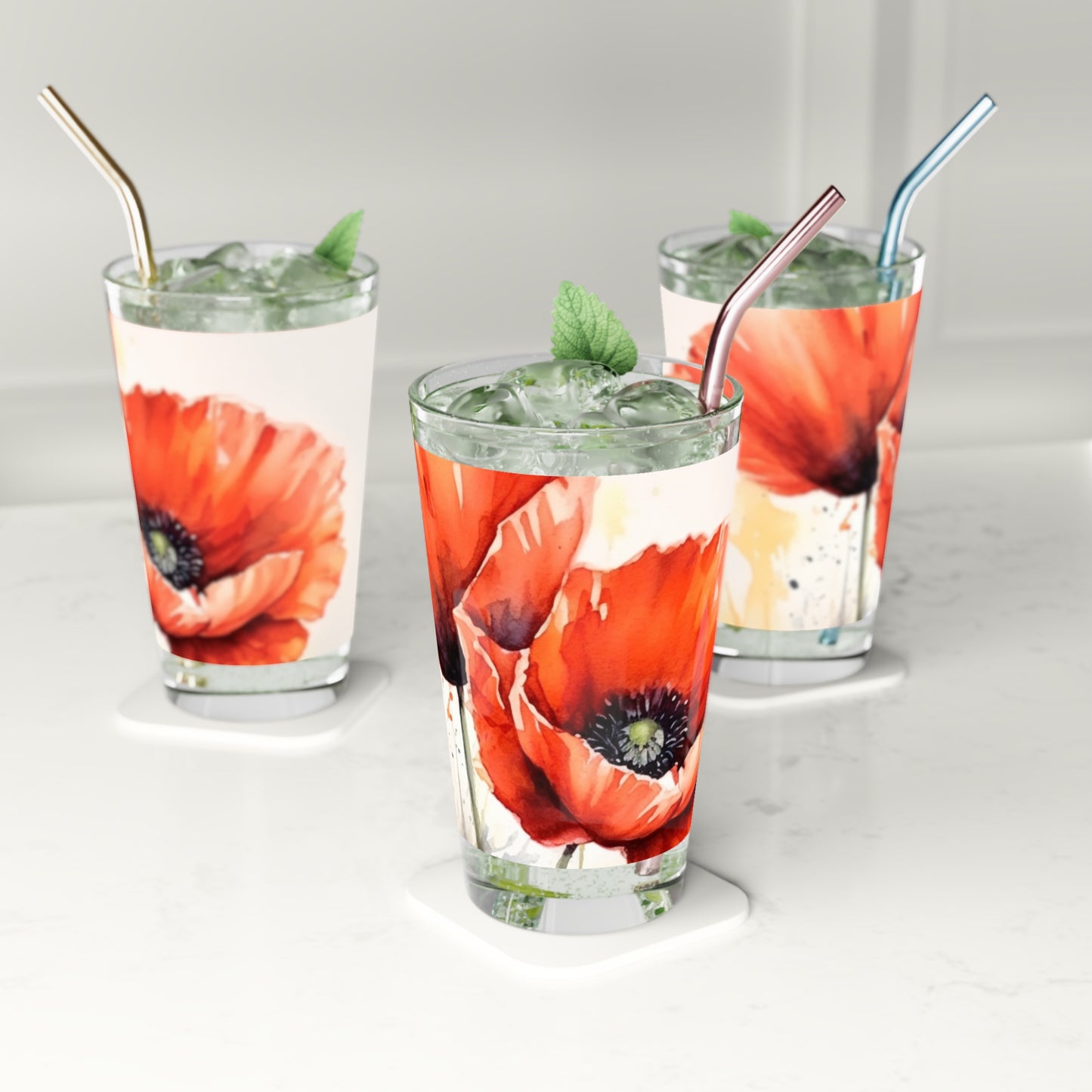 Whimsical Poppy Flower Watercolor Pint Glass: An Artistic Delight